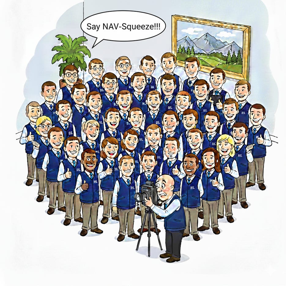 We pulled over the AltView van and excitedly opened our FT App (go ahead, mock us. But only for the FT App bit, we get touchy when people criticize our van). We skimmed the Alphaville article about Hamilton Lane’s Private Asset Fund’s (PAF) NAV-Squeezing and proxy mischief. Our favorite bit: